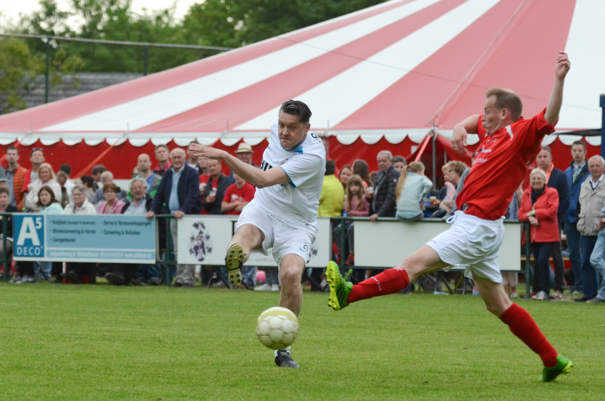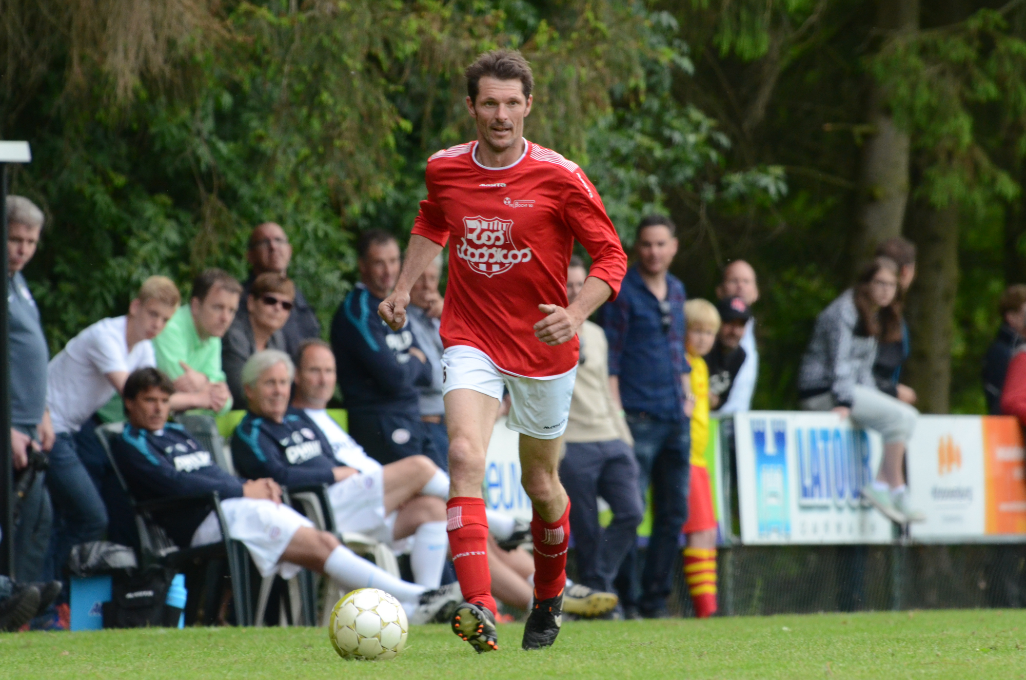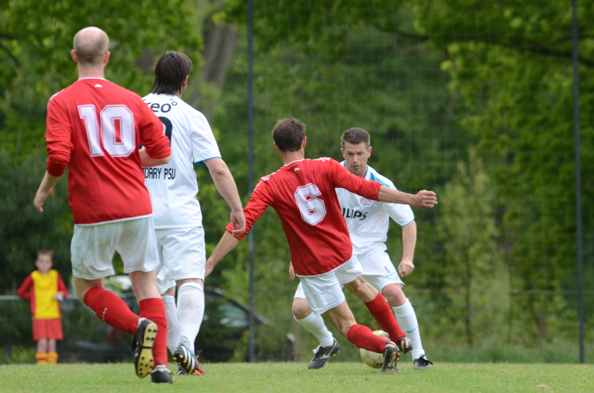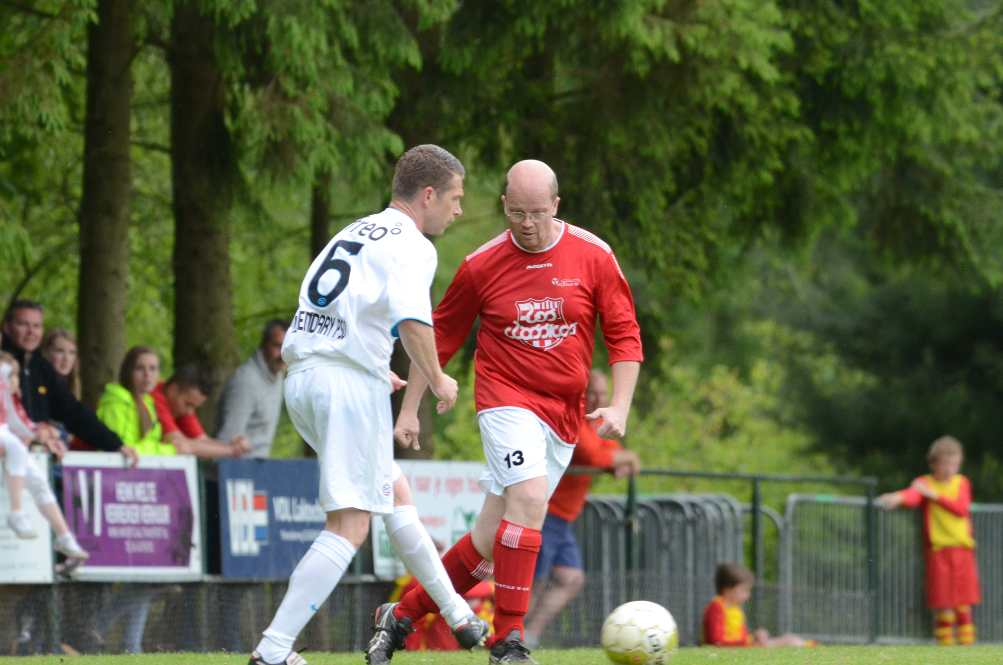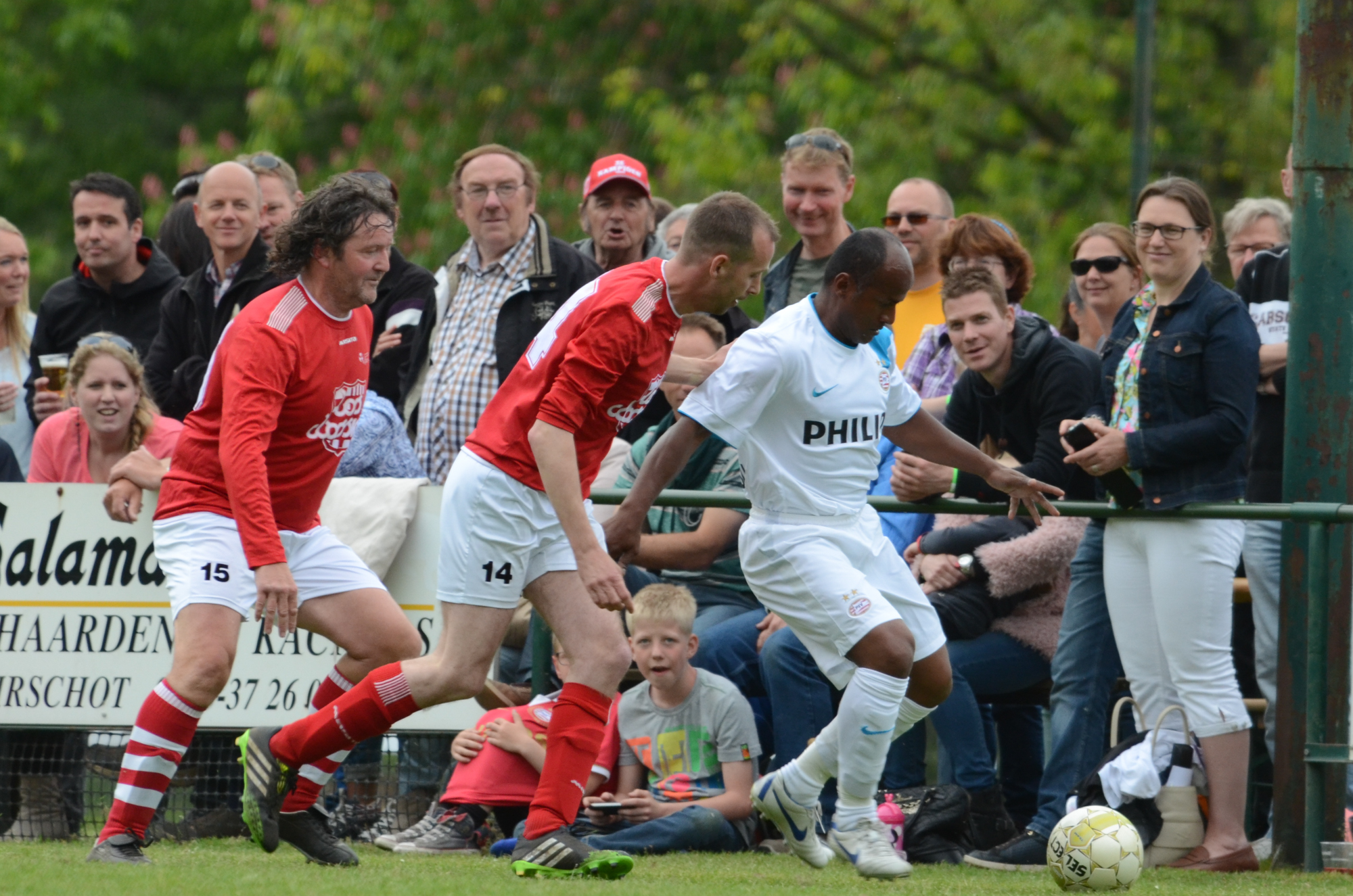 De ‘oudjes’ van PSV hebben op Hemelvaartsdag in de wedstrijd tegen een samengesteld team van de Bocht’80 laten zien nog steeds te beschikken over een fabuleuze baltechniek. Legendary PSV was op volle oorlogssterkte naar sportpark D’n Staak in Oirschot gekomen. Voetballers met een puike staat van dienst: WK finale gespeeld, Europa Cup 1 gewonnen, meerdere landstitels en KNVB bekers, etc. Binnen vijf minuten was het al 0-1 door de opkomende voorstopper Geoffrey Prommayon. Even later verzilverde Arnold Bruggink een penalty. Nadat Ovidiu Stinga met een gekruld schot, dat uiterst precies in de bovenhoek ging, doelman Mark Faes voor een voldongen feit stelde, was de wedstrijd al beslist. Na de thee scoorde Youri Petrov, waarna Ronald Vermaas namens de Bocht’80 de eretreffer 1-4 op het scorebord zetten. Legendary PSV versierde deze mooie voetbalmiddag voor zo’n vijfhonderd bezoekers met een doelpunt van Mart van Duren en het slotakkoord was voor Arnold Bruggink met zijn tweede treffer.
